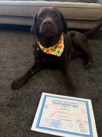The English Labrador retriever completed 5 rounds of chemotherapy over the course of 10 weeks. Chest x-rays were taken after the treatment was completed and showed no evidence of metastasis.